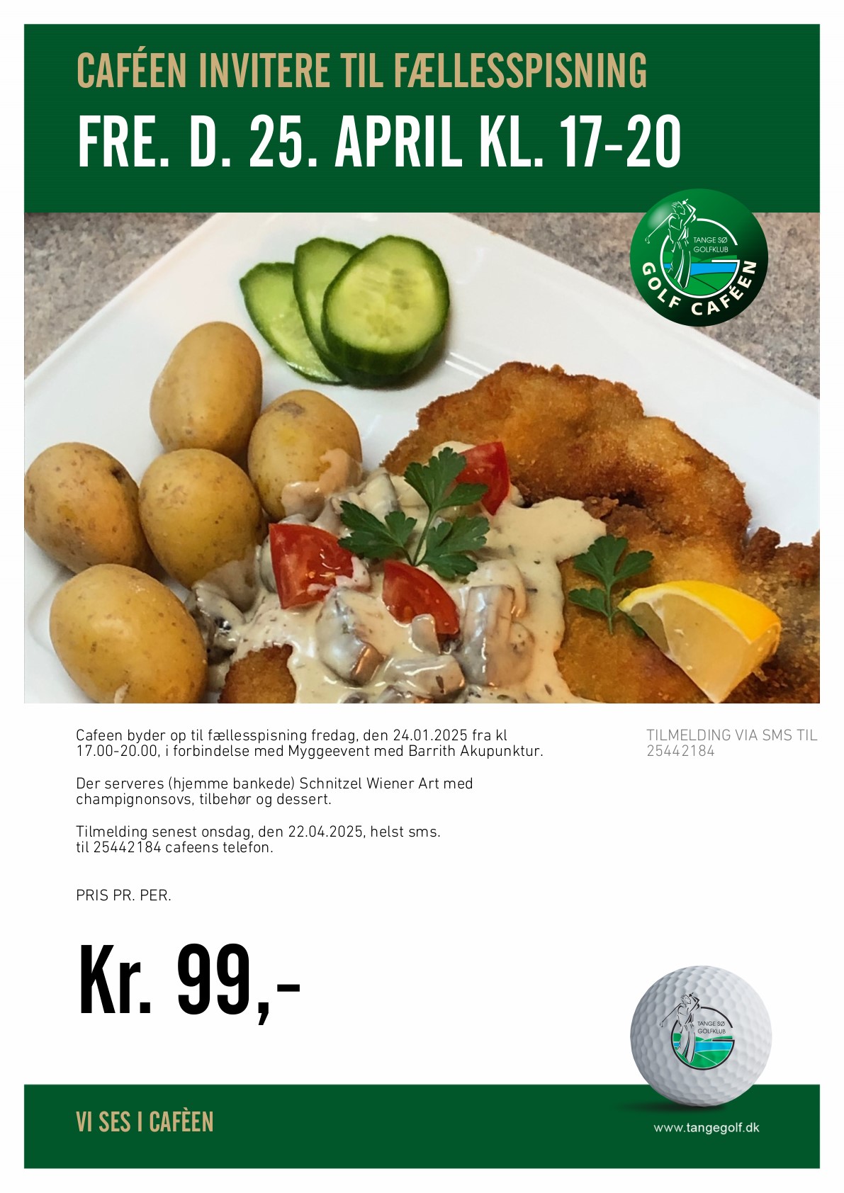 Tilmelding til fællesspisningen pr. SMS til Caféen på 25442184.