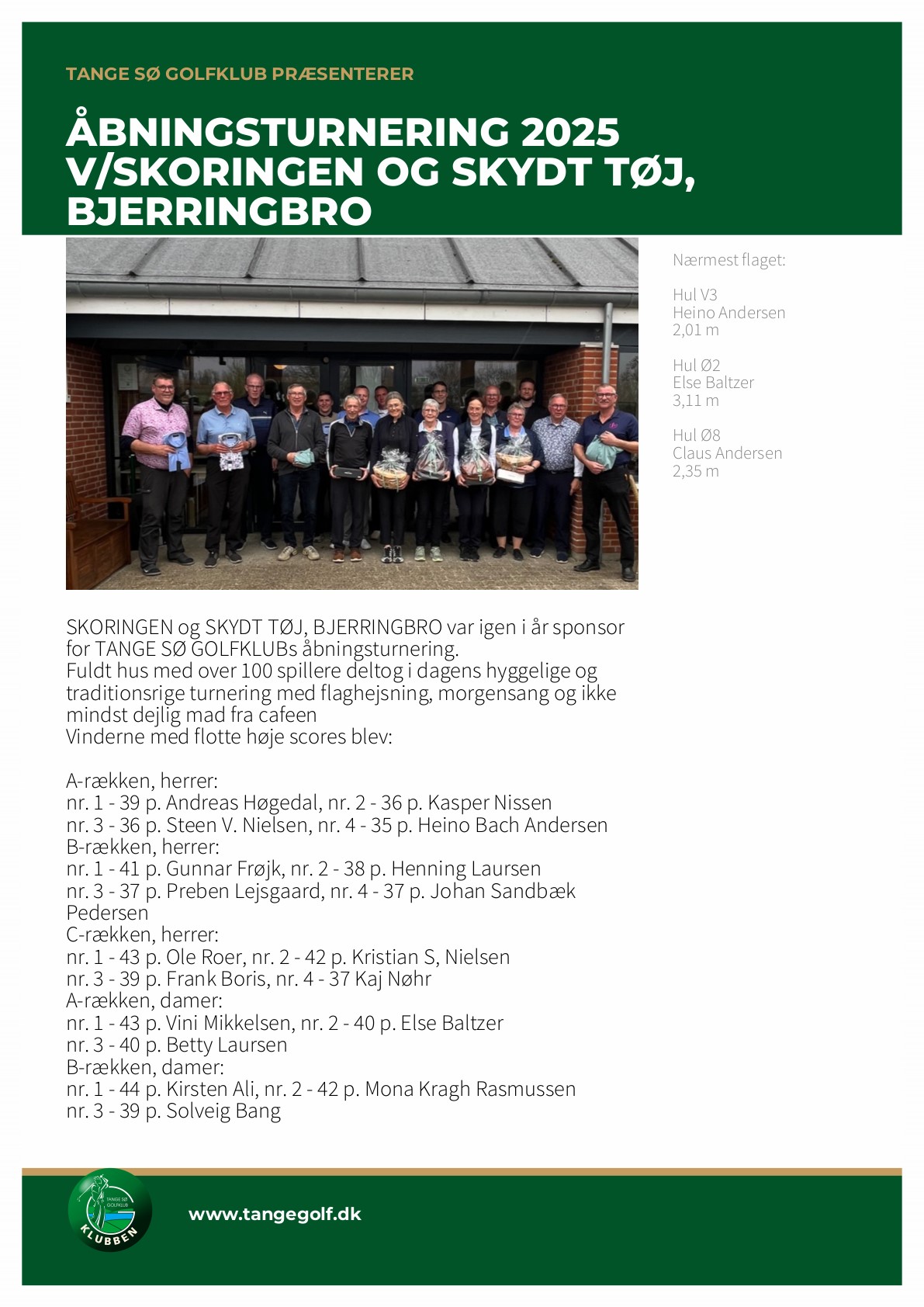 SKORINGEN & SKYDT TØJ, BJERRINGBRO var igen i år sponsor for TANGE SØ GOLFKLUB' s åbningsturnering.