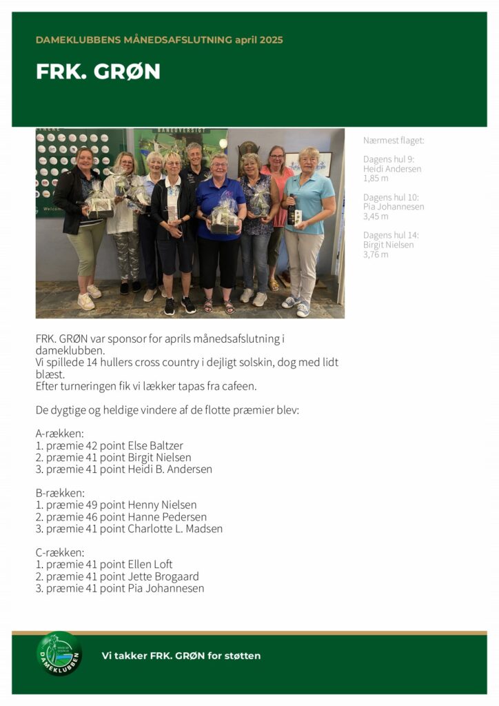 FRK. GRØN var sponsor for aprils månedsafslutning i dameklubben.