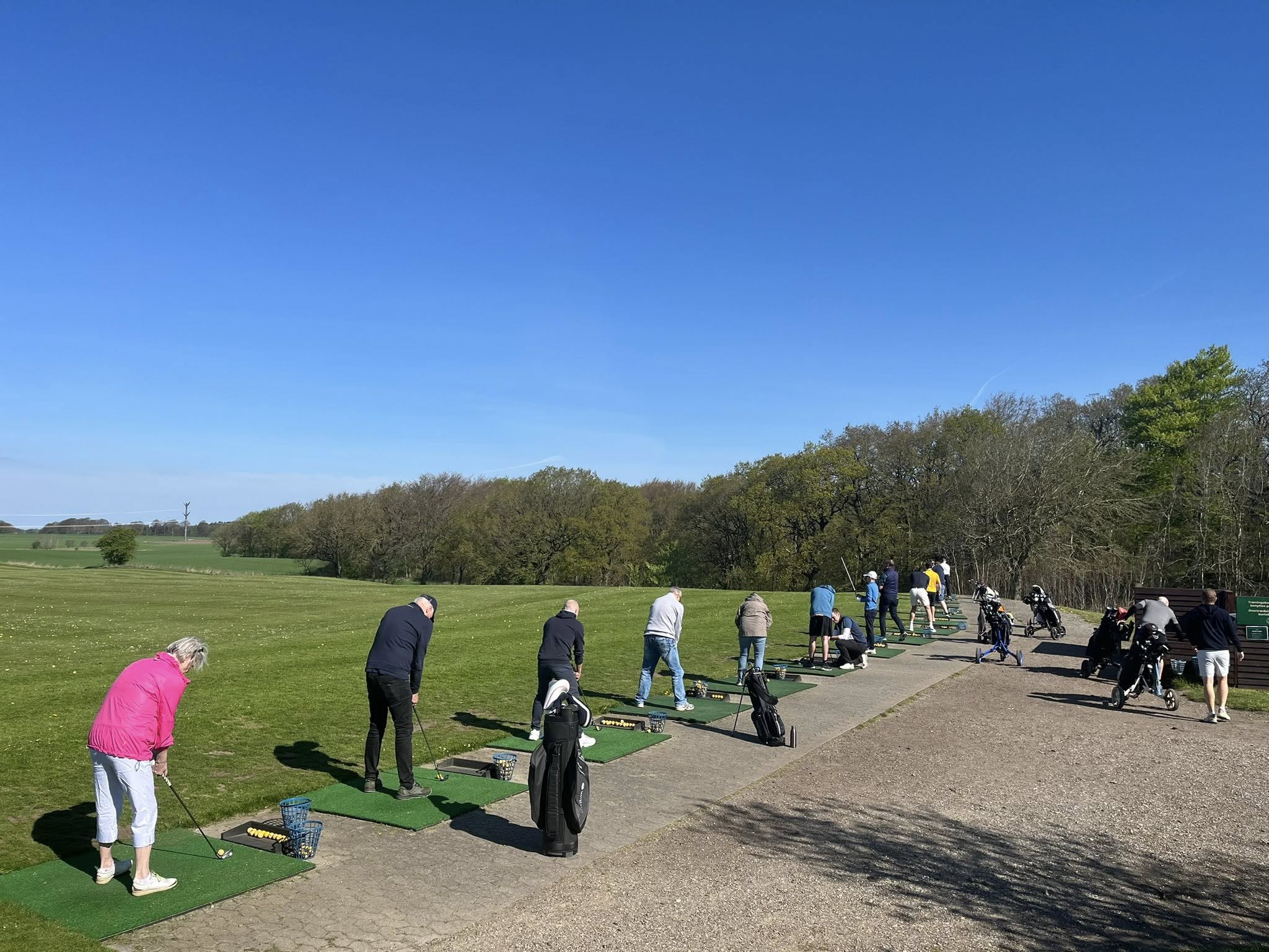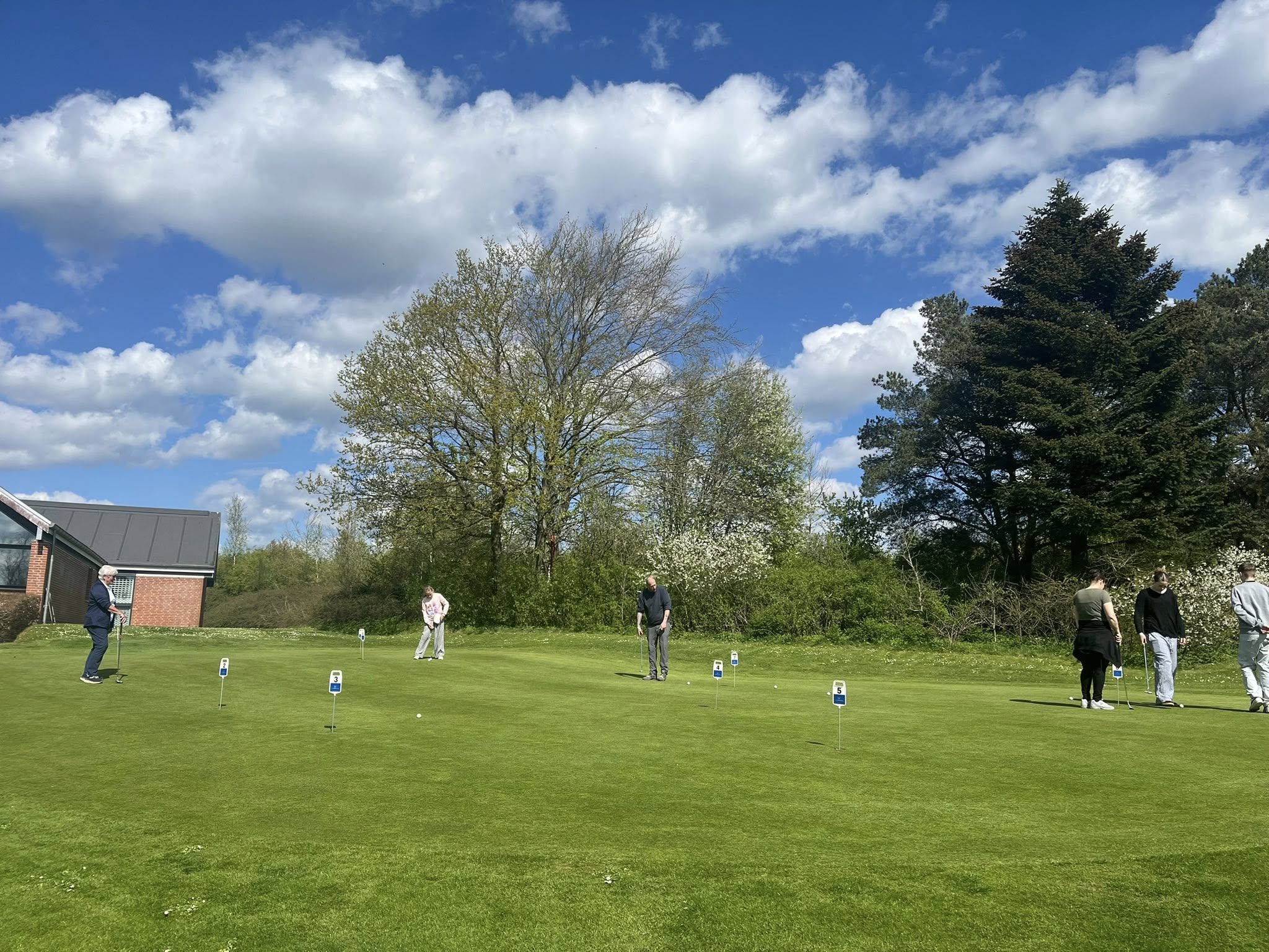I dag har vi afviklet Golfens Dag med 15 besøgende, som blev budt velkommen af Kenneth fra kontoret og fik instruktion i Golfspillet af klubbens træner Danny, Kristian Bach (formand for begynderudvalget), Kirsten Ali (teori/regeludvalget) og Lisbeth Bøeg (Bestyrelsen)