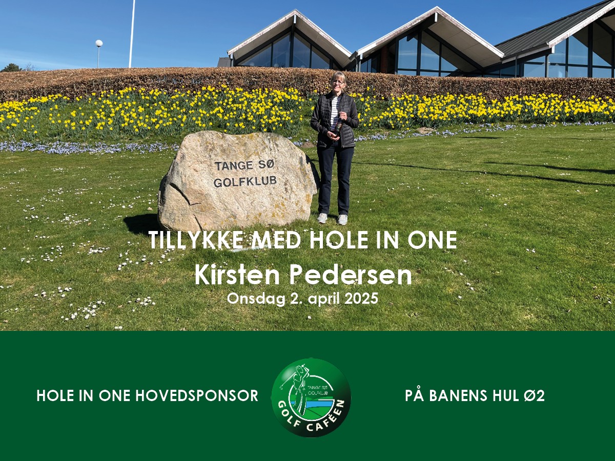Onsdag d. 2. april 2025 lykkes det TSG medlem Kirsten Pedersen at lave årets 2. HIO på vores dejlige bane, på banes hul Ø2.