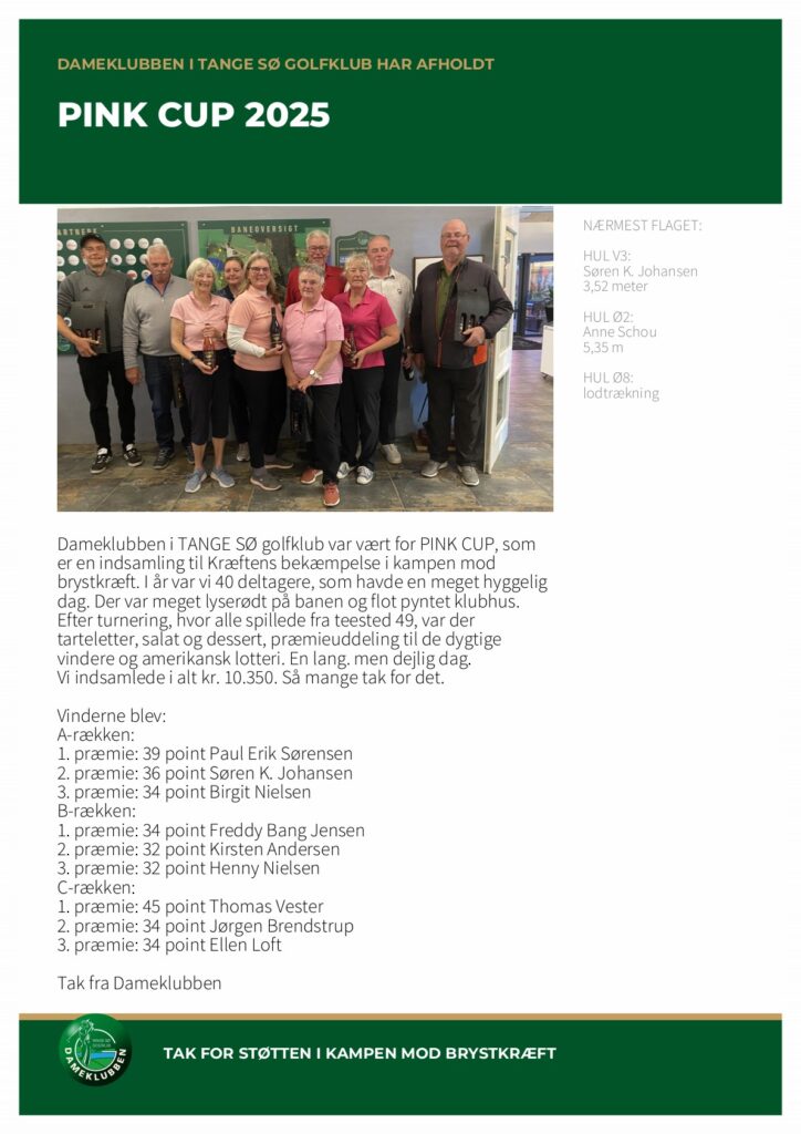 Dameklubben i TANGE SØ golfklub var vært for PINK CUP, som er en indsamling til Kræftens bekæmpelse i kampen mod brystkræft.