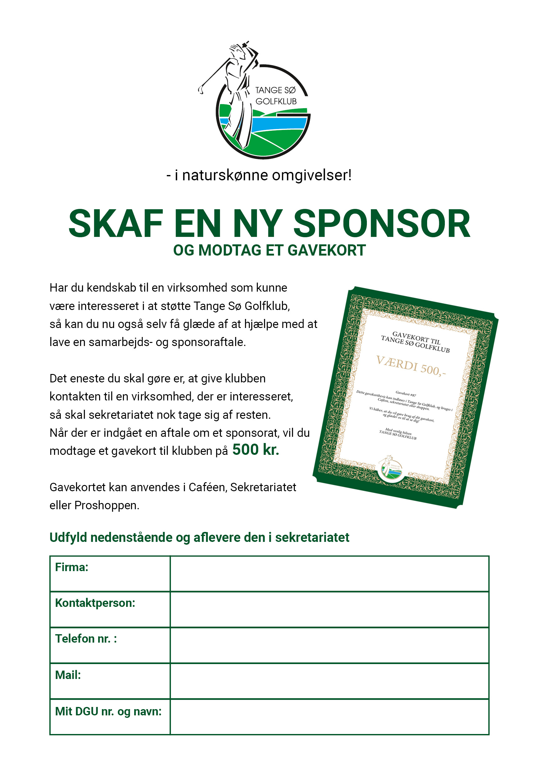 I Tange Sø Golfklub er vi hele tiden på udkig efter nye samarbejdspartner og sponsorer.