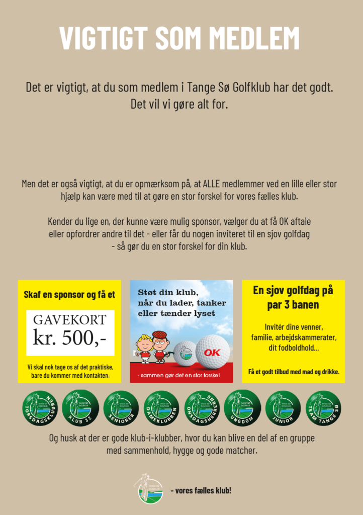 Det er vigtigt, at du som medlem i Tange Sø Golfklub har det godt.